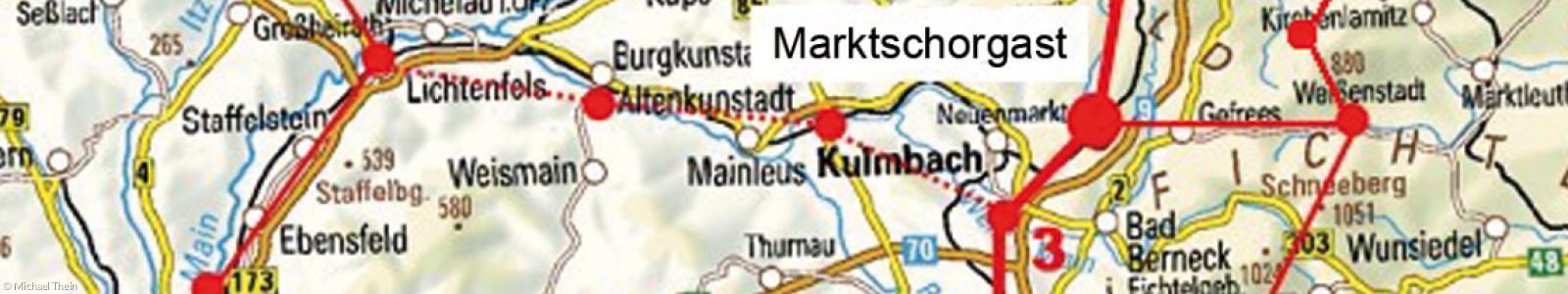 Diese Internetseite beschreibt die zwei Wege durch Oberfranken von Hof über Bayreuth nach Nürnberg (mit den ergänzenden Nebenwegen) und von Coburg über Lichtenfels nach Nürnberg.